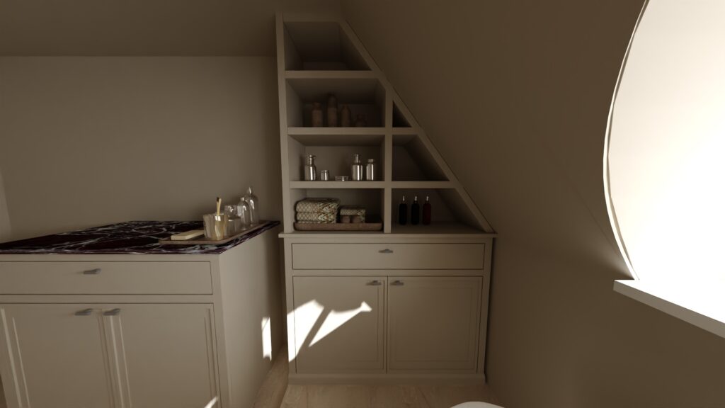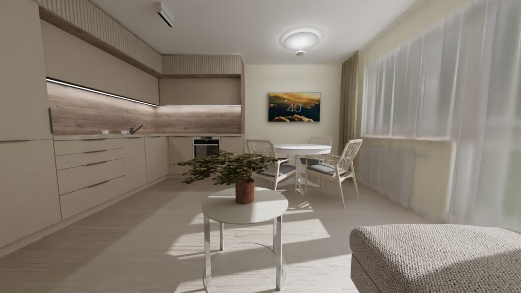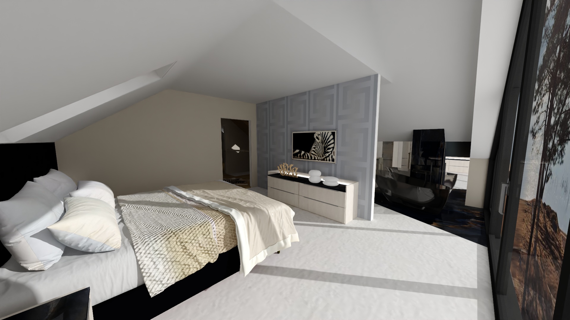 I ETAP to aranżacja wnętrz, czyli rozmieszczenie mebli, sprzętów użytkowych, itp. tak aby prawidłowo ustalić funkcję i ergonomię pomieszczenia. Dzięki aranżacji wnętrz w 3D możemy zobaczyć nasze przyszłe wnętrza i zrewidować pewne oczekiwania i wyobrażenia, skorygować ustawienie ścianek działowych, wyznaczyć miejsca z płytkami, drewnem, zaprojektować oświetlenie poszczególnych stref pomieszczenia, rozplanować hydraulikę tak aby wszystkie sprzęty nie były tylko banalnie rozstawione pod ścianami i żeby wnętrza nabrały ciekawego klimatu z zaskakującymi rozwiązaniami.